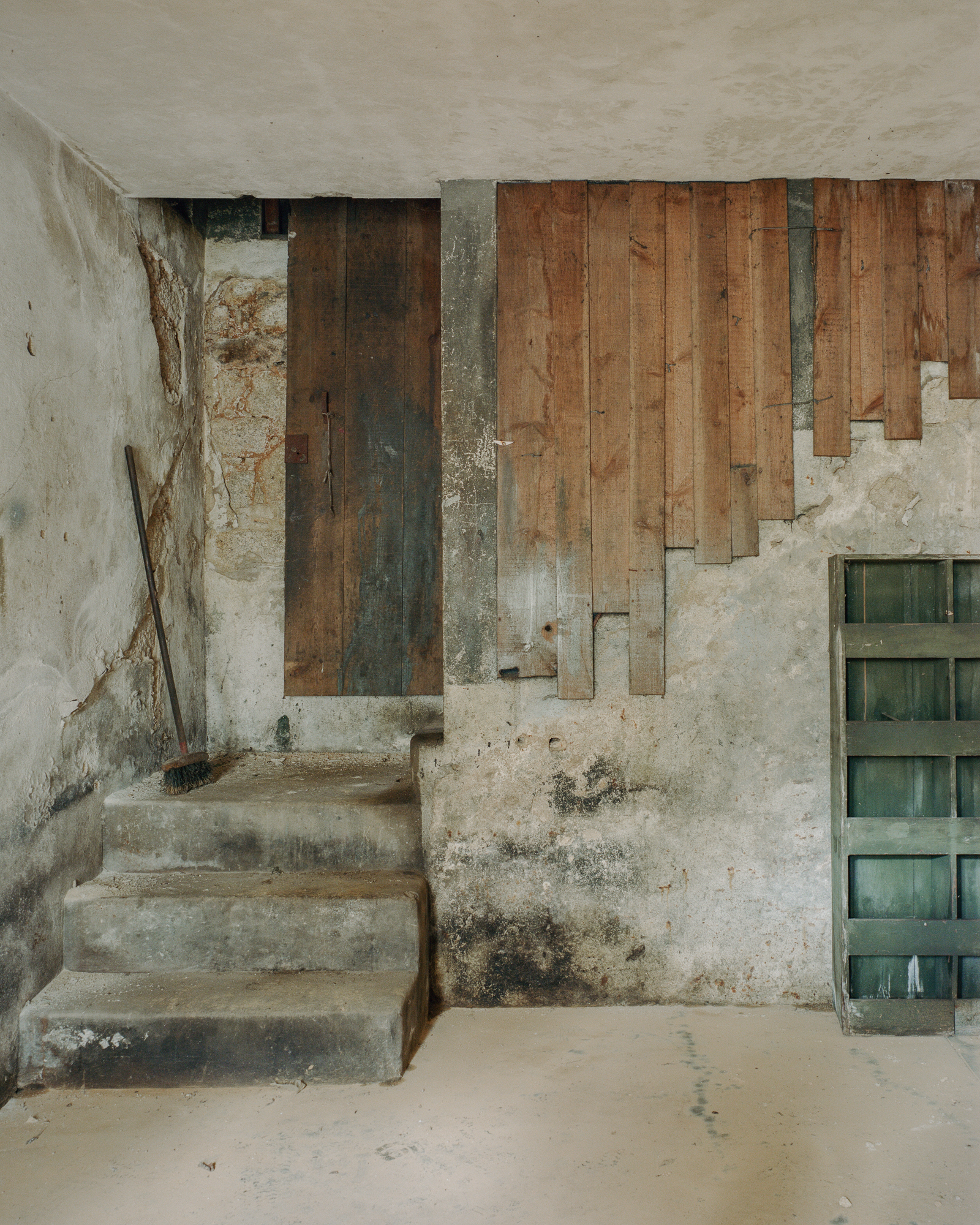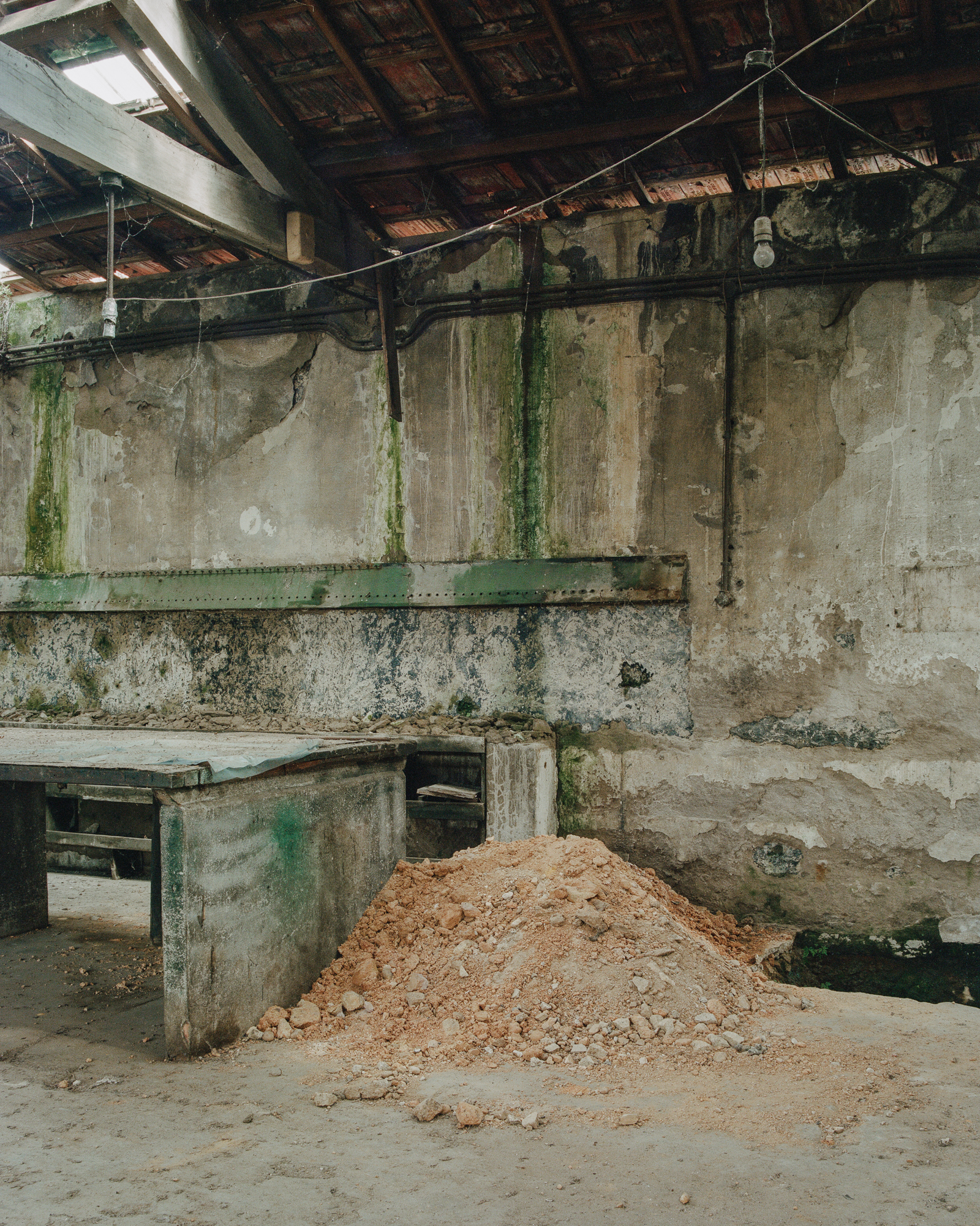 O espaço de habitação desenvolve-se no piso térreo em contacto direto com o terreno. Para tal, foi necessário escavar sobre o pavimento existente da nave industrial, criando a possibilidade de ampliação.